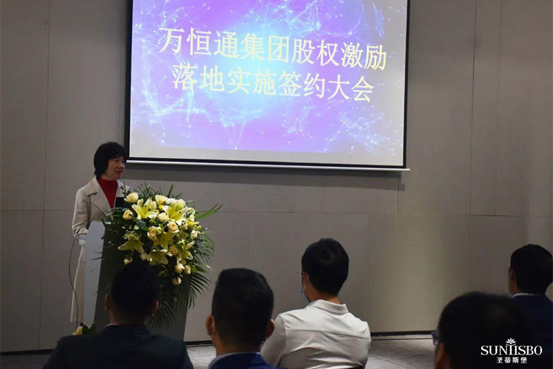 接下来,集团副董事长梁碧霞女士上场致辞,她讲到:尊龙时凯集团在王董的领导下,从1982年一直奋斗至今,已走过39年的历程,这离不开大家共同的努力,她号召在座同仁为自己加油鼓掌。她进一步强调:此次的股权激励既是感谢大家以往为尊龙时凯集团的付出,同时也是为了将来大家拥有更美好的生活。尊龙时凯此次股权激励不是终点而是起点,我们要挖掘和吸引更多优秀的人才加入尊龙时凯。只要我们上下一条心,内外一股劲、坚定信心,就能把尊龙时凯做成百年企业,把圣蒂斯堡做成有美誉度、消费者喜欢的、享誉全球的家具品牌!