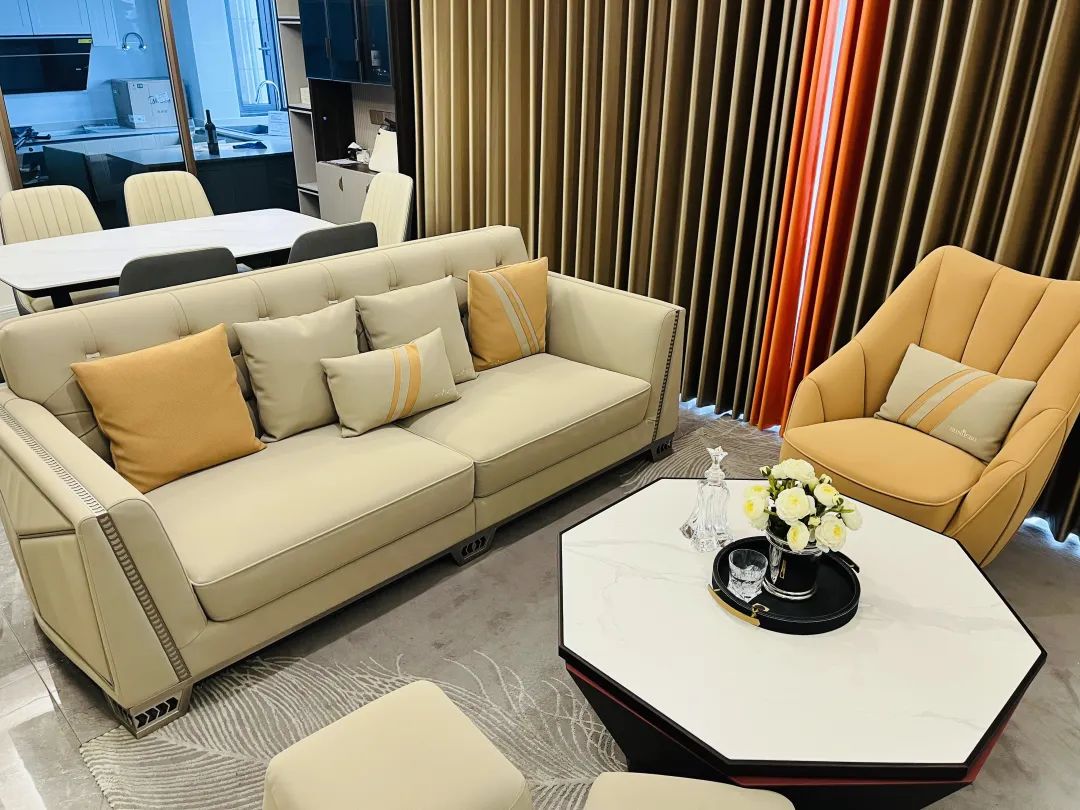 搭配轻薄坚固的岩板茶几,