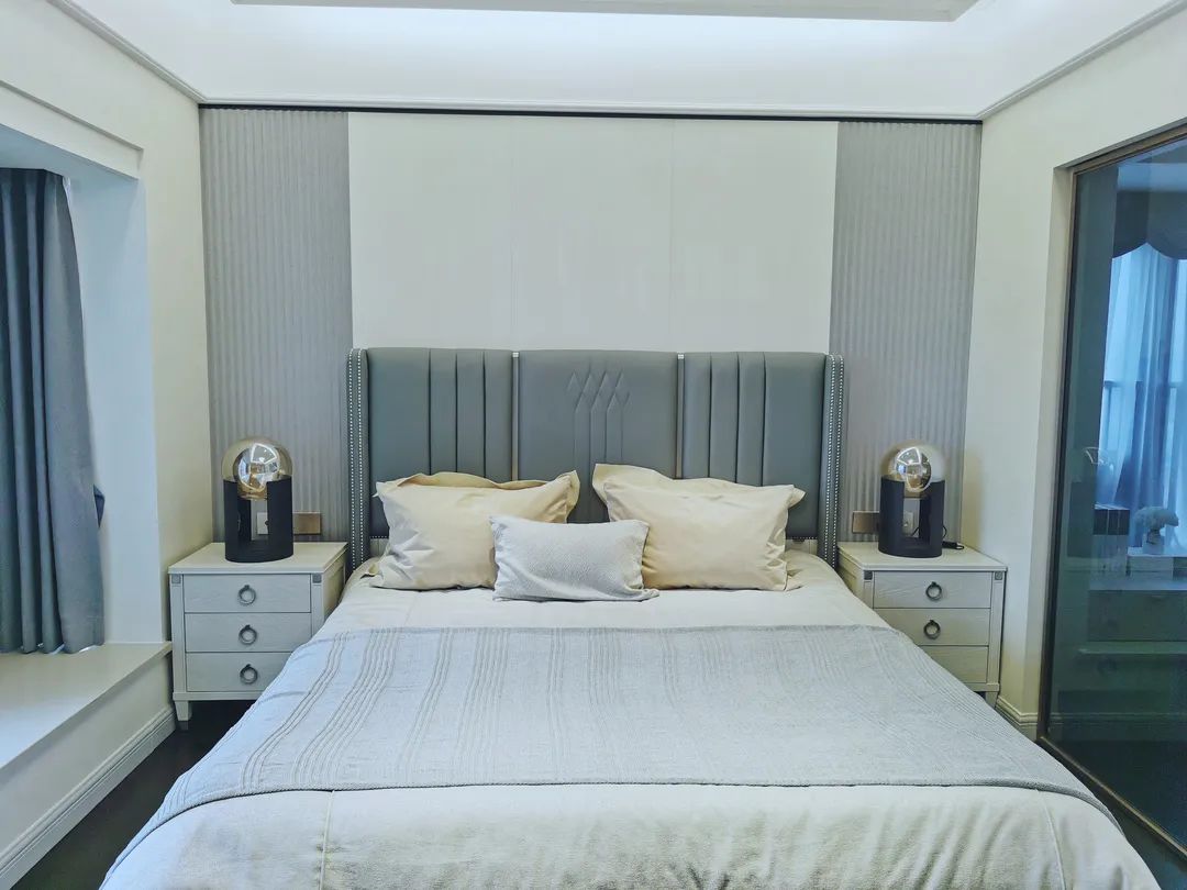 床头硬包背景和空间留白的设计手法,